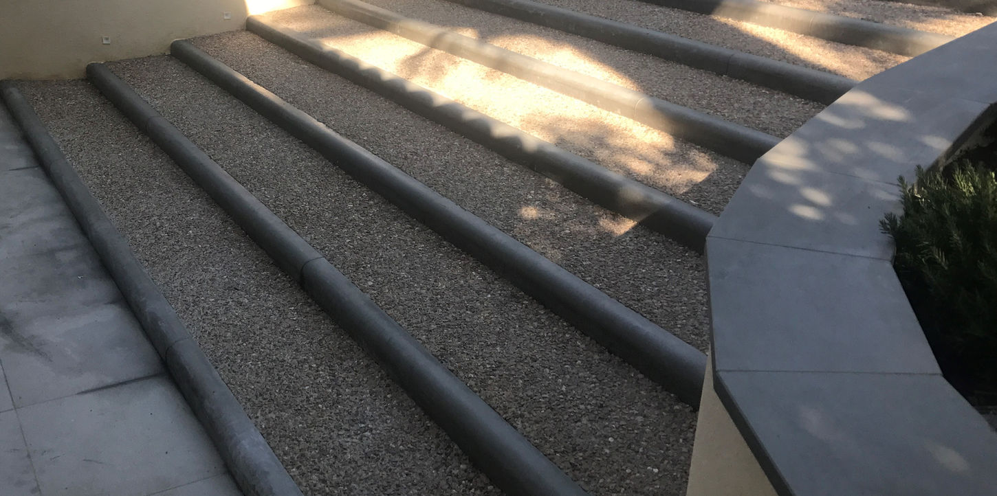 Puis vient l'habillage de vos terrasses et escaliers avec la pose de tout type de carrelage ou pierre, de vos murets et portails recouverts de pierres, briques ou enduits couleurs.